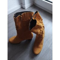 Stiefel mit 6 cm Absatz, etwa 26 cm Schafthöhe, leichte Zierraffung am Schaft, seitlicher Reißverschluss ... mehr