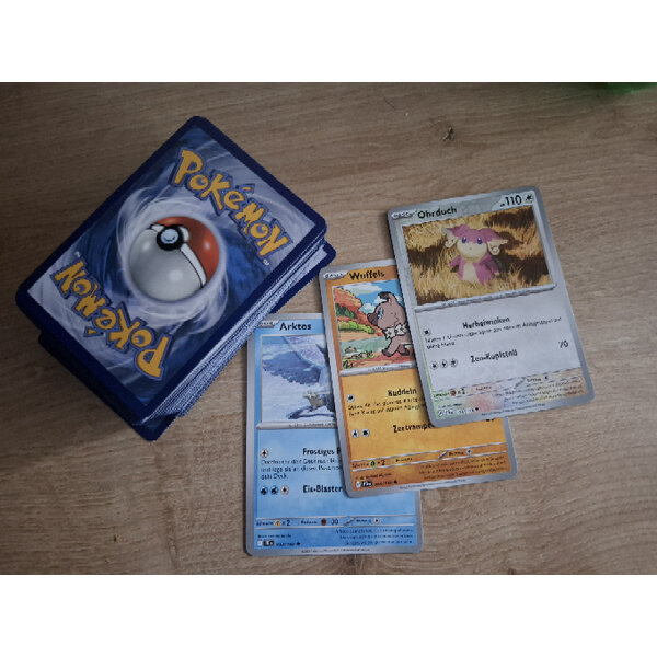 100 zufällig zusammengestellten Pokemonkarten abzugeben. Die Karten sind in einem super Zustand. Reversed Holos sind enthalten, jedoch keine super seltenen Karten.