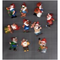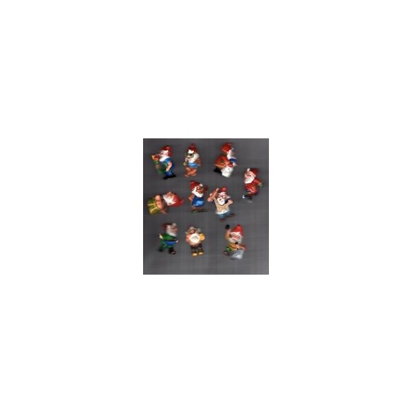 10 verschiedene, lustige Mini Wichtel/Gartenzwerg Figürchen - keine doppelt. Material ein fester Kunststoff.