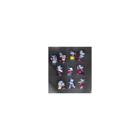 10 verschiedene, lustige Mini Nilpferd Figürchen - keine doppelt. Material ein fester Kunststoff.