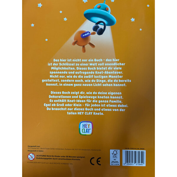 11 Stück Hey Clay Monter Kinderknetgummi, lufttrocknend, farbenfroh. Mit Anleitungsbuch von Rewe