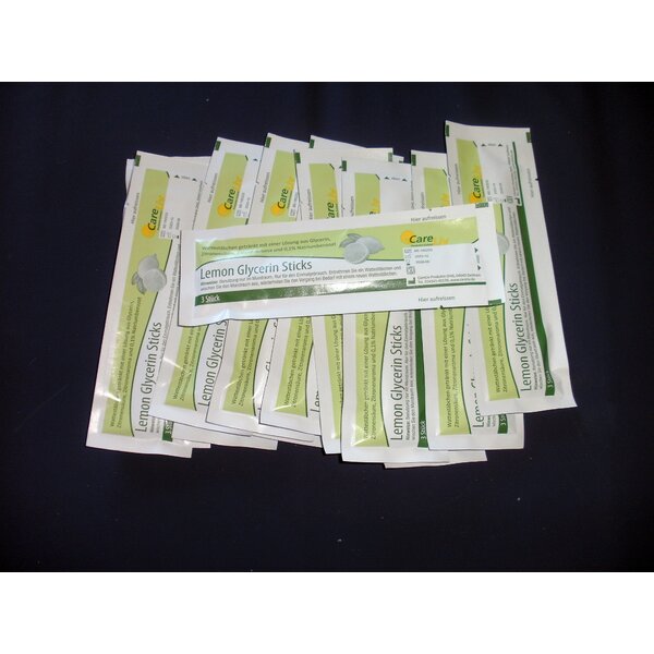 Wattestäbchen getränkt mit einer Lösung aus Glycerin, Zitronensäure, Zitronenaroma und 0,1% Natriumbenzoat.