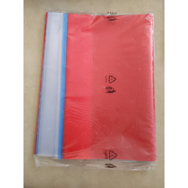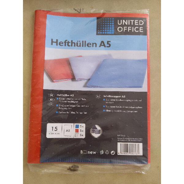15 Hüllen für kleine Schulhefte, je 3 rote, blaue und transparente