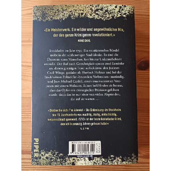 Stockholm im Jahr 1793: Ein verstümmeltes Bündel treibt in der schlammigen Stadtkloake. Es sind die Überreste eines Menschen, fast bis zur Unkenntlichkeit entstellt. Der Ruf nach Gerechtigkeit spornt zwei Ermittler an, diesen grausamen Fund aufzuklären: den Juristen Cecil Winge, genialer als Sherlock Holmes und bei der Stockholmer Polizei für »besondere Verbrechen« zuständig, und Jean Michael Cardell, einen traumatisierten Veteranen mit einem Holzarm. Schon bald finden sie heraus, dass das Opfer mit chirurgischer Präzision gefoltert wurde, doch das ist nur einer von vielen Abgründen, die auf sie warten …
