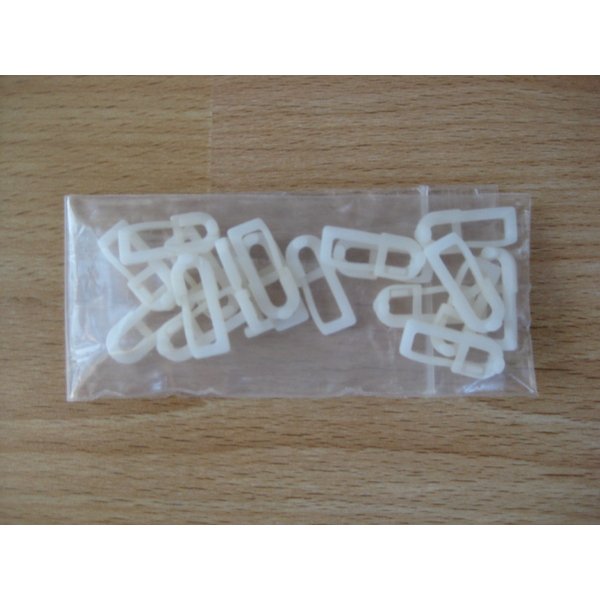 2:1 Tausch, 18 weiße wohl sog. Gelenkgleiter für Gardinenschiene = kleine Elemente, mit der die Gardine an der Gardinenschiene befestigt / aufgezogen werden