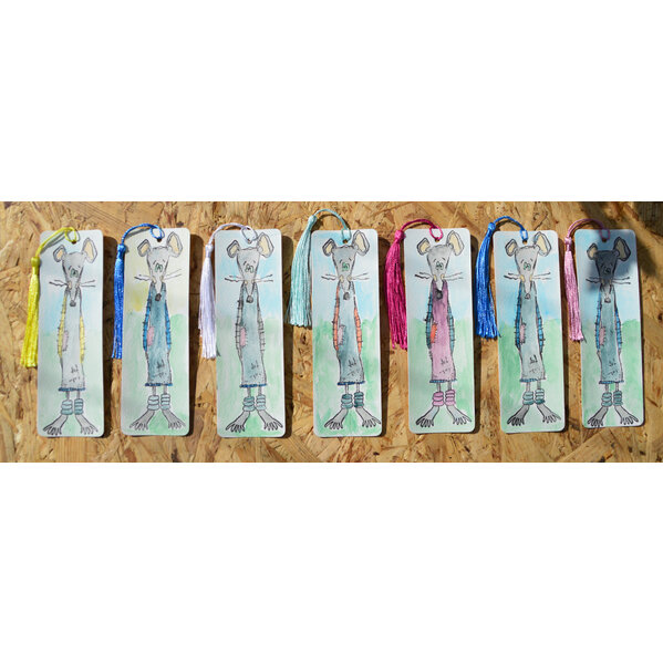 Lesezeichen Leseratte Schulanfang EInschulung Aquarell