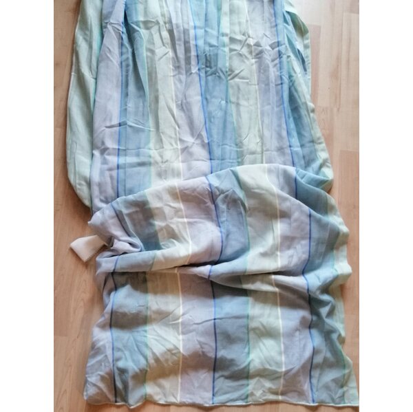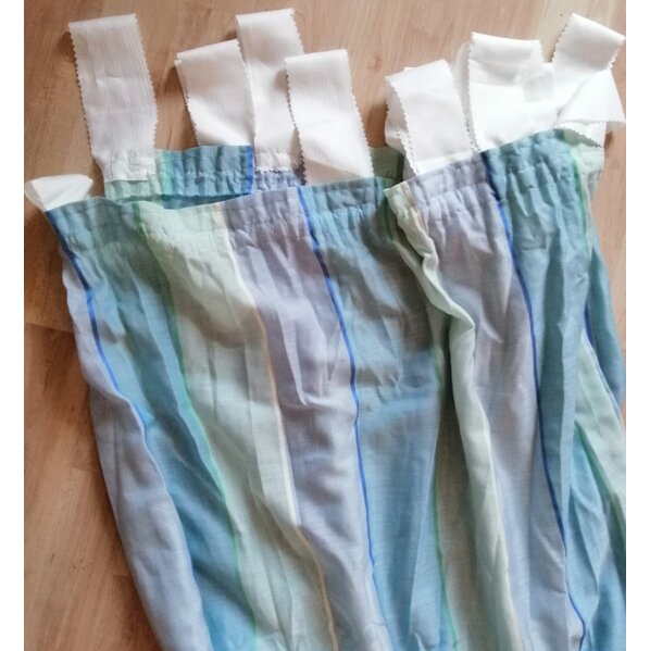einzelner Vorhang in hellblauen, weiß, blau,leicht hellgrünen Tönen, nicht durchsichtig mit Bleibandabschluß und nachträglich angenähten Schlaufen (17) zum Aufhängen