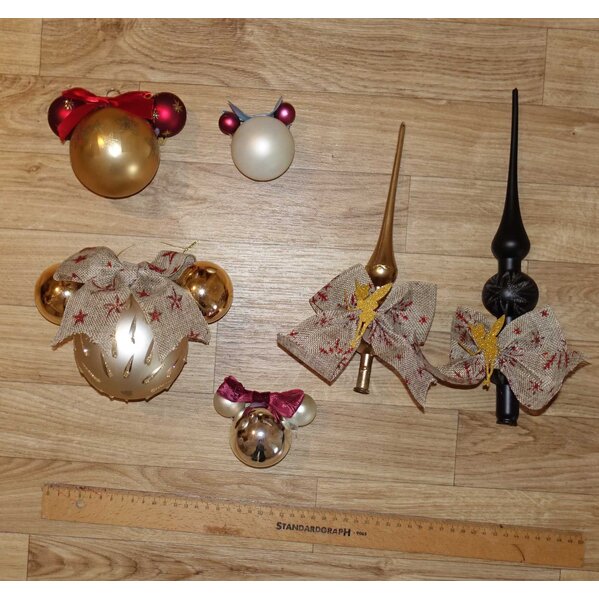 meine Selbstgemachte Deko der letzten Weihnachten. Mit Liebe gestaltete Minnie maus Baumkugel sowie 2 Spitzen mit einer Tinkerbell