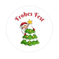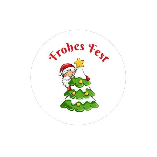 24 runde Etiketten- Frohes Fest - Weihnachtsbaum und -mann - selbstklebend