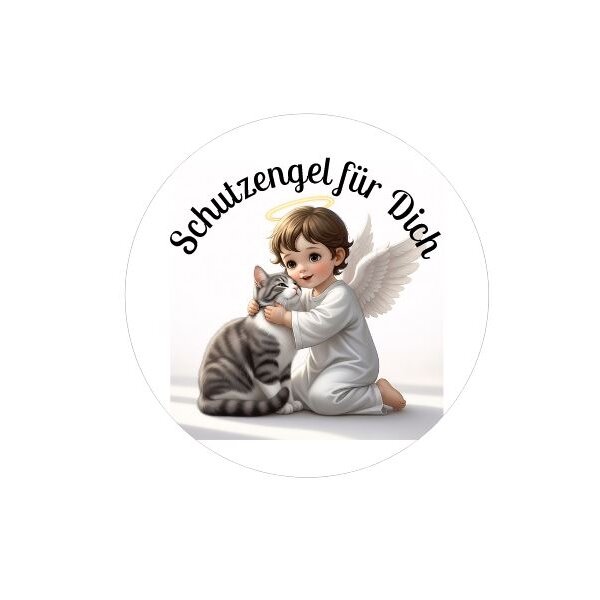 24 runde Etiketten Schutzengel mit Katze selbstklebend (1 Bogen DIN A4)