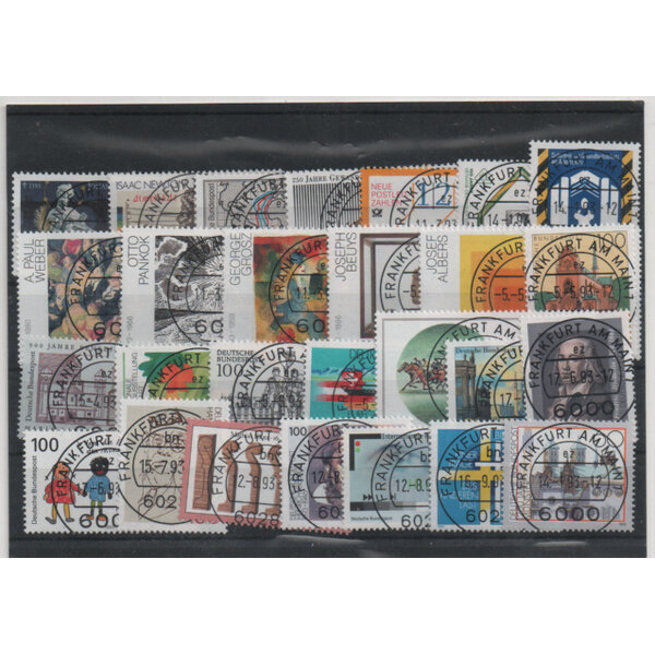 27 gestempelte Briefmarken Bund 1993 sauber rundgestempelt
