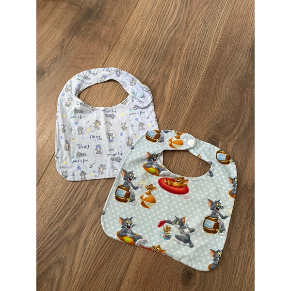 Beide Lätzchen sind gebraucht mit leichtem Materialabrieb, minimale Fleckenrückstände vorhanden, insgesamt aber noch sehr ordentlich