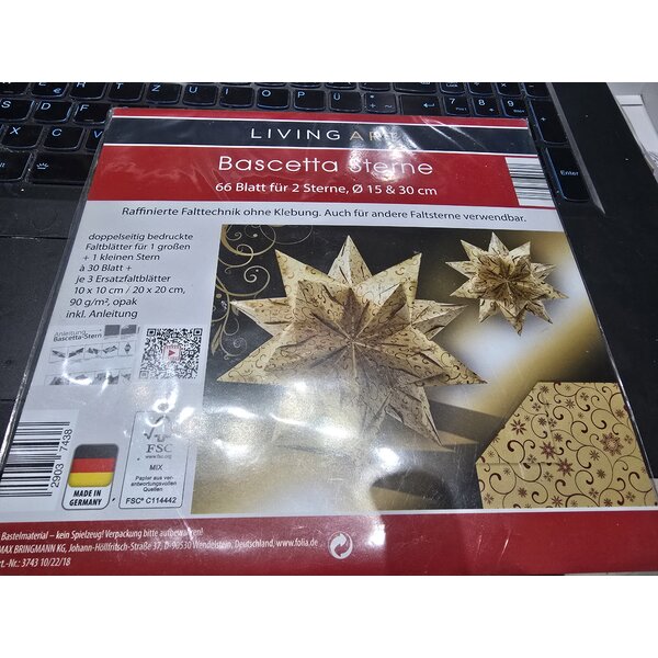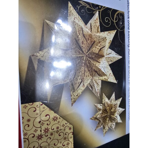 66 Blatt für 2 Sterne, Durchmesser 15 cm und 30 cm. Doppelseitig bedruckte Faltblätter inklusive je 3 Ersatzblätter.