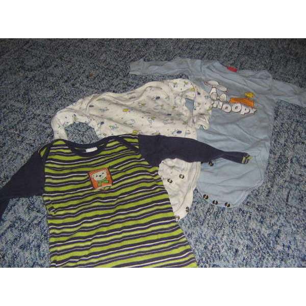 Das Unterhemd und der blaue Body sind Gr. 62/68, der andere Body ist Gr. 50/56, fällt aber relativ groß aus.
