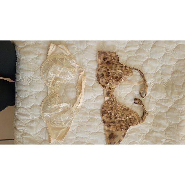 der cremefarbene ist von Passionata, Größe 85B