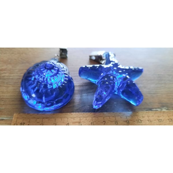 2 Deko-Klammern mit einem Seestern bzw. einer Muschel aus blau-tranzparentem Hartplastik