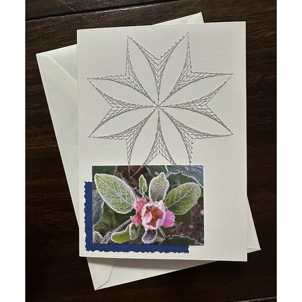 Hochwertige Doppelkarte mit Ausschnitten von Ansichtskarten, Kalenderblättern oder Fotos wurde mit Fadengrafik veredelt. Inklusive Umschlag.