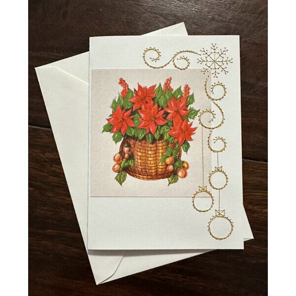 Hochwertige Doppelkarte mit Ausschnitten von Ansichtskarten, Kalenderblättern oder Fotos wurde mit Fadengrafik veredelt. Inklusive Umschlag.