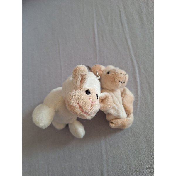 Zwei Schafe suchen ein neues Zuhause, ein Schlüsselanhänger und eins mit Magneten in den Pfoten.