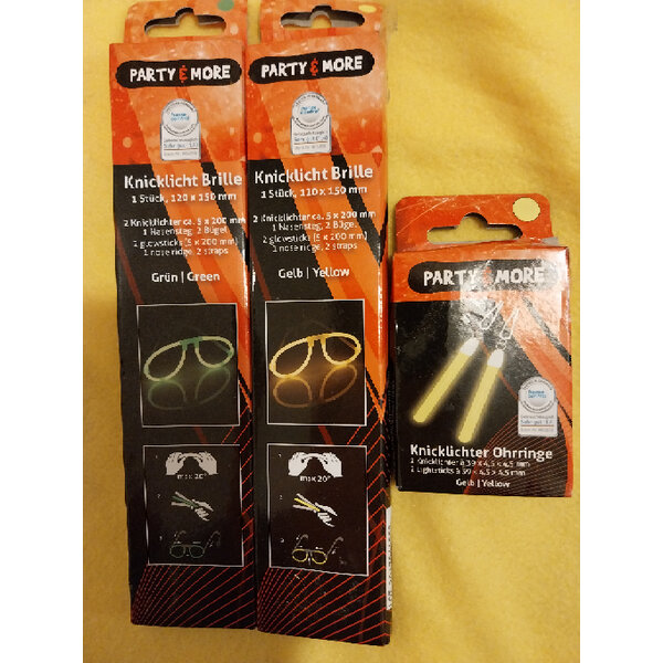 2 Knicklicht Brille Knicklichter Ohrringe Fasching Halloween Party