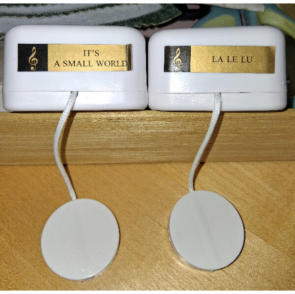 2 Spieluhren, vor einiger Zeit gekauft und im Schrank versteckt :), wurden nur ausprobiert und nie irgendwo "verbaut". Melodie: La Le Lu und It's a Small World
