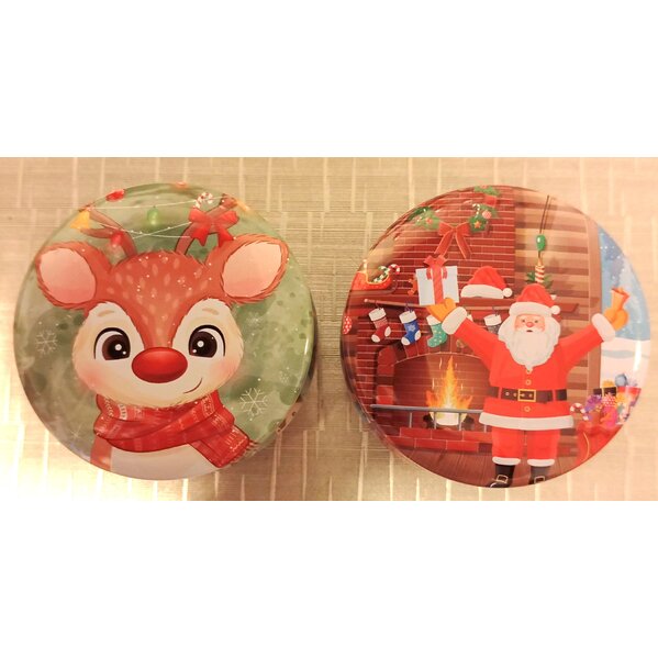 NEU - 2 Stück Kerzen-Dosen mit Weihnachtsmotiv - Duft: 1 x Cedar EnglishPear + 1 x Caramel Coffee