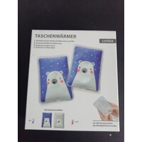 2 Taschenwärmer mit Eisbärmotiv, sekundenschnell wohltuende Wärme bis zu 60 Minuten, Farbwechseleffekt bei Aktivierung, Wiederverwendbar durch Auskoche im Wasserbad.