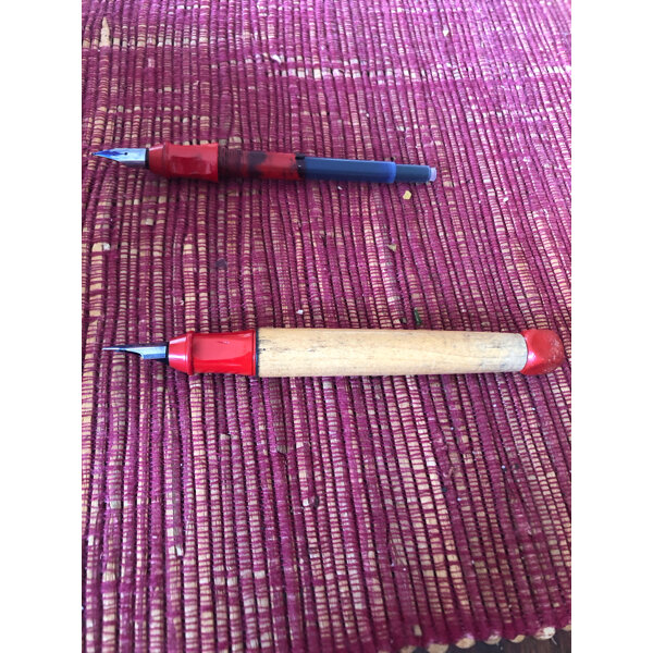 2 gebrauchte Füller aus Holz, trotz Patronen fließt die Tinte nicht gut. Vielleicht etwas für geduldige Ausprobierer ? Patronen gibt es mit dazu