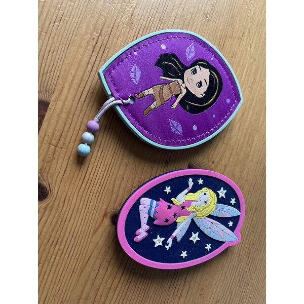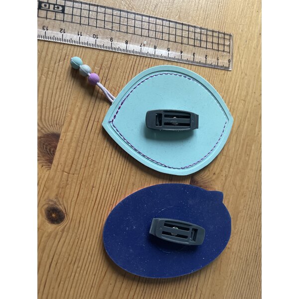 2 Anhänger Buttons, ich weiß nicht genau, wie die heißen. Hatten wir für den Der Die Das Schulranzen.