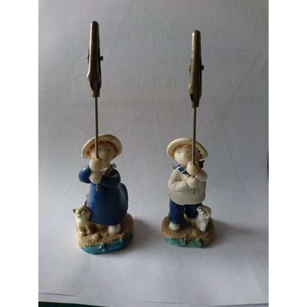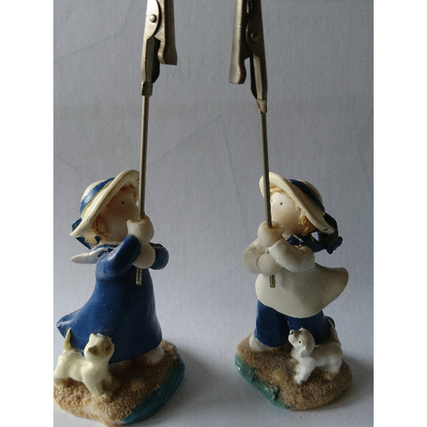 Mädchen mit Katze, Junge mit Hund als Notizzettelhalter, Tischkartenhalter, Menühalter oder Fotohalter