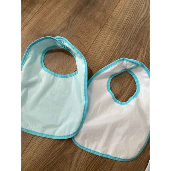 2 Babylätzchen, Obermaterial Frottee und hinten wasserdichtes Polyester. Können in der Maschine bei 30 Grad gewaschen werden.