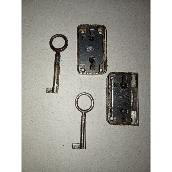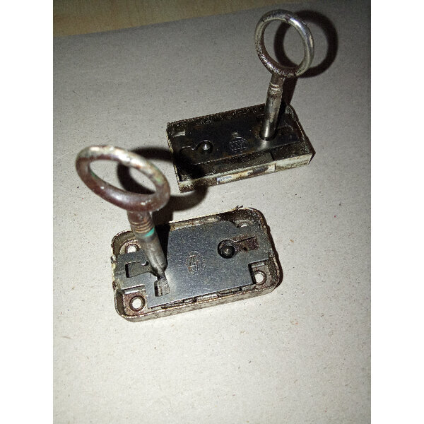 2 Kastenschlösser aus den '50er- / '60er - Jahren mit den originalen dazugehörigen beiden Schlüsseln. Kein Versand an Packstationen.
