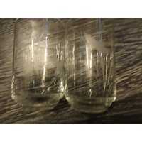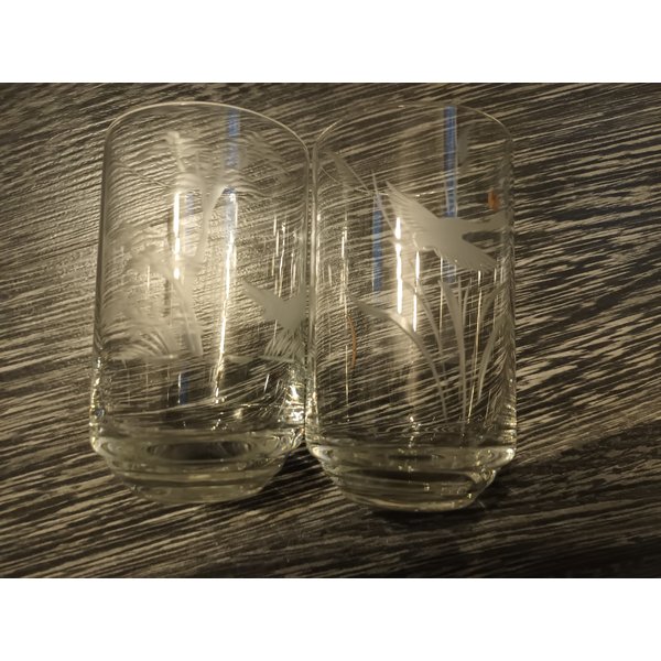 Biete hier 2 größere Schnapsgläser, 8 cm Höhe und 5 cm Durchmesser. Der Schliff ist ein Baum und ein Hund.