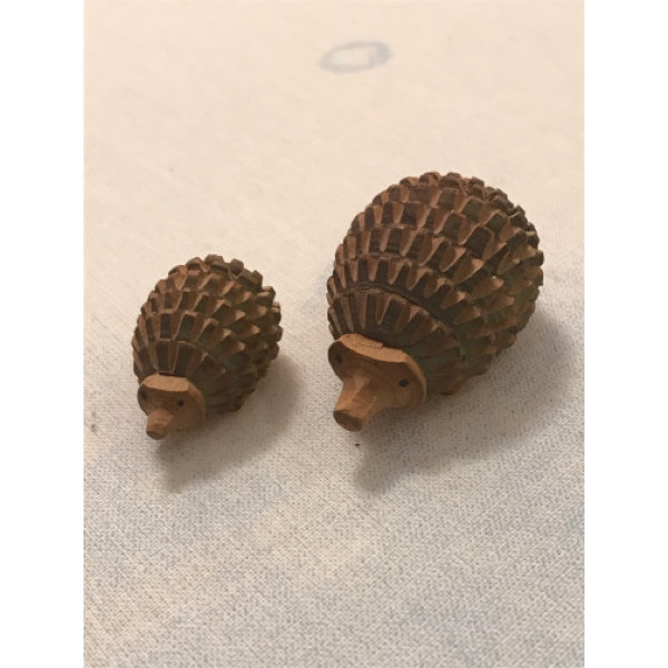 Zwei süße kleine Igel aus Holz. Handarbeit aus den 70er Jahren