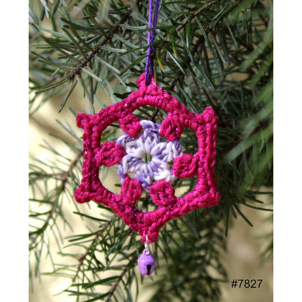 Ich habe kürzlich ein paar aufwendige Sterne gemacht. Der Stern ist von mir gehäkelt, dauerhaft gestärkt und mit einem Glöckchen, Anhänger und /oder Glitzer verziert.