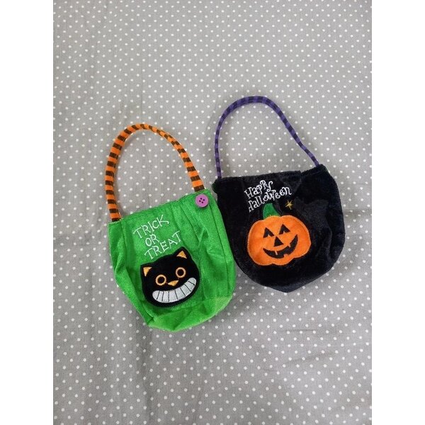 Zwei Mini Halloween Taschen aus Samt, perfekt fürs Süßigkeitensammeln, ca 25 cm gross, also eher klein