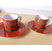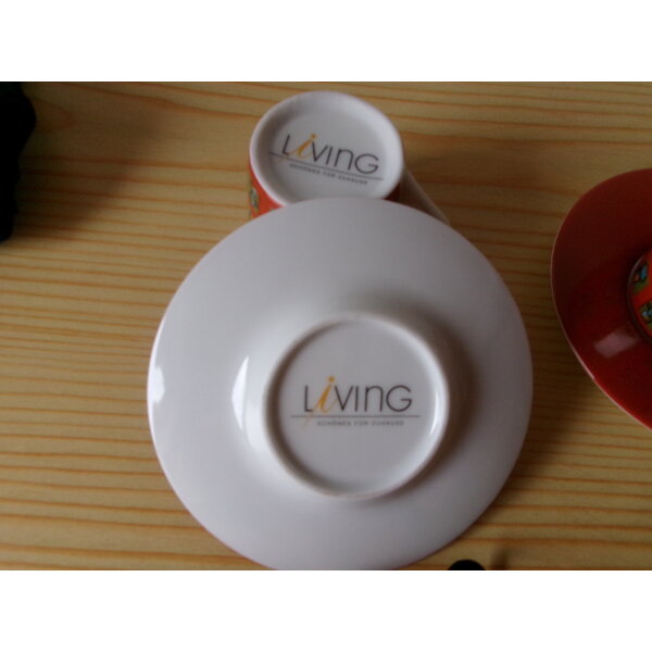 Diese zwei Espresso-Tassen mit Untersetzern haben einen rostbrauen Grundton und sind mit Kakteen-Bildern bedruckt (siehe Foto). Sie wurden nur selten benutz und sind darum iin einem guten Zustand