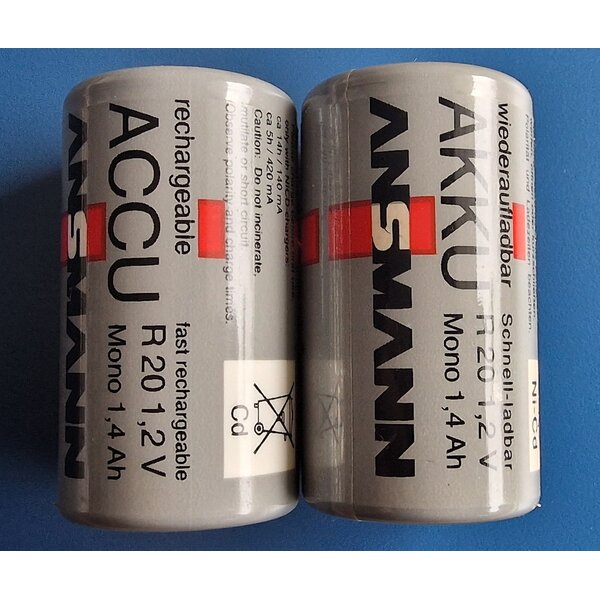 Biete hier 2 Akkus der Größe Mono (R20) an. Beide Akkus waren wenig im Einsatz und sind i. O. und funktionieren einwandfrei.