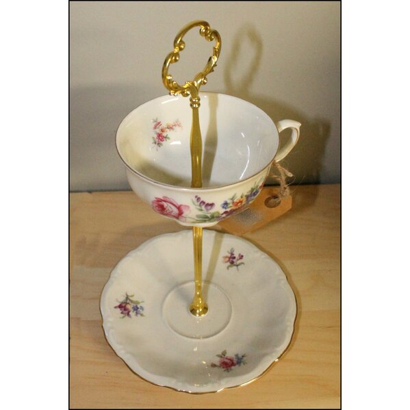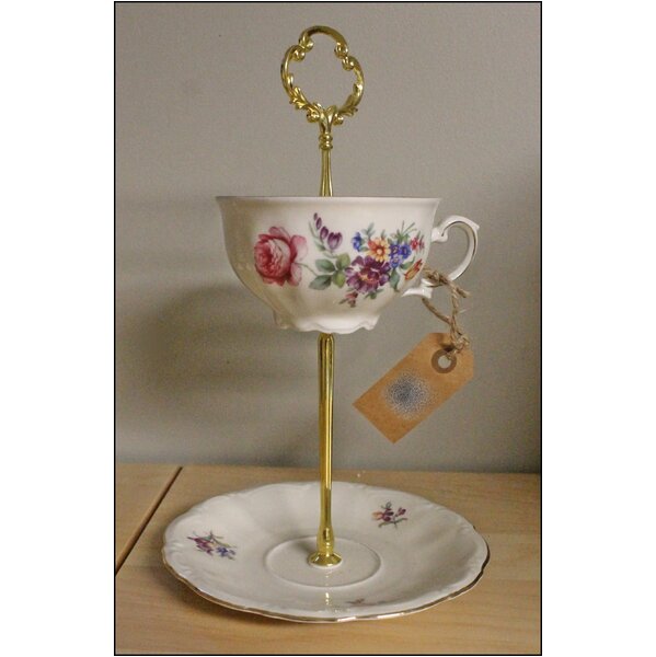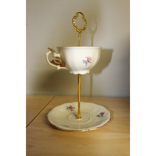 Schöne 2 teilige Etagere mit einem tollen Blumenmotiv.