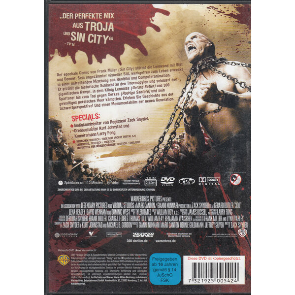 300 ist die unerbittliche Filmversion der historischen Schlacht an den Thermophylen: Im antiken Griechenland starb König Leonidas mit 300 Spartanern im Kampf gegen Xerxes und sein gigantisches persisches Heer. Ihr Mut und ihre Opferbereitschaft angesichts der ausweglosen Situation inspirierte die griechischen Stämme zum Bündnis gegen die Perser - so entstand eine Urzelle der Demokratie. 300 beruft sich auf den gleichnamigen Comic-Roman von Frank Miller. In seinem Abenteuerepos geht es um Leidenschaft, Mut, Freiheitsdrang und Opferbereitschaft - verkörpert durch die Spartaner, die sich hier in einer der berühmtesten Schlachten der Geschichte bewährten.
