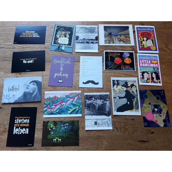 in gutem bis sehr gutem Zustand. Alle Karten sind unbeschrieben und ungelaufen. Da Karten minimal angestossen sein können oder altersbedingt Lagerungsspuren aufweisen, lege ich noch ein paar Extra-Postkarten dazu.