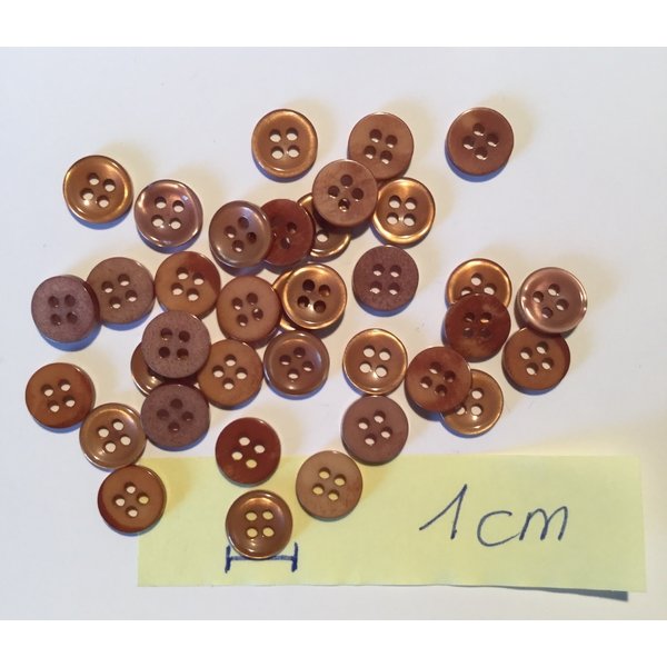 Hellbraunes Perlmutt; neu - waren nie angenäht; Oberfläche glänzt in edlem Perlmuttbraun - 4-Loch, unten gerade, Unterseite heller und matt, dort sieht man sehr schön die unterschiedliche Farbgebung der Muscheln, die Knöpfe fallen immer etwas unterschiedlich aus- halt Natur