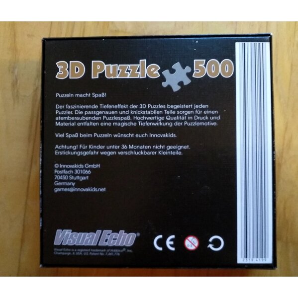 "Der faszinierende Tiefeneffekt der 3D Puzzles begeistert jeden Puzzler. Die passgenauen und knickstabilen Teile sorgen für einen atemberaubenden Puzzlespaß. Hochwertige Qualität in Druck und Material entfalten eine magische Tiefenwirkung der Puzzlemotive."