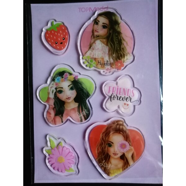 3 Bögen mit Gel-Stickern Top Model. Die Motive sind unterschiedlich groß, die Bögen jeweils 20 x 14,5 cm.