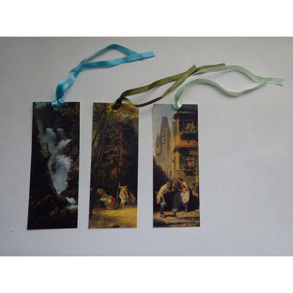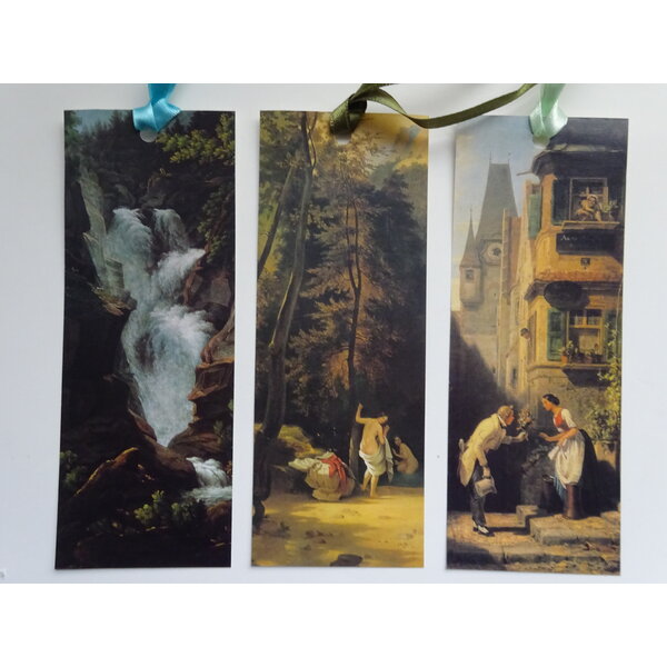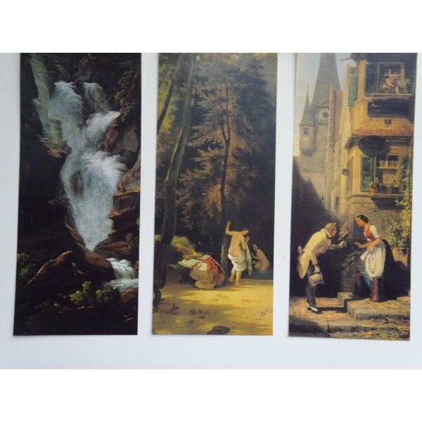 Drei Lesezeichen mit unterschiedlichen Malereien der Romantik.