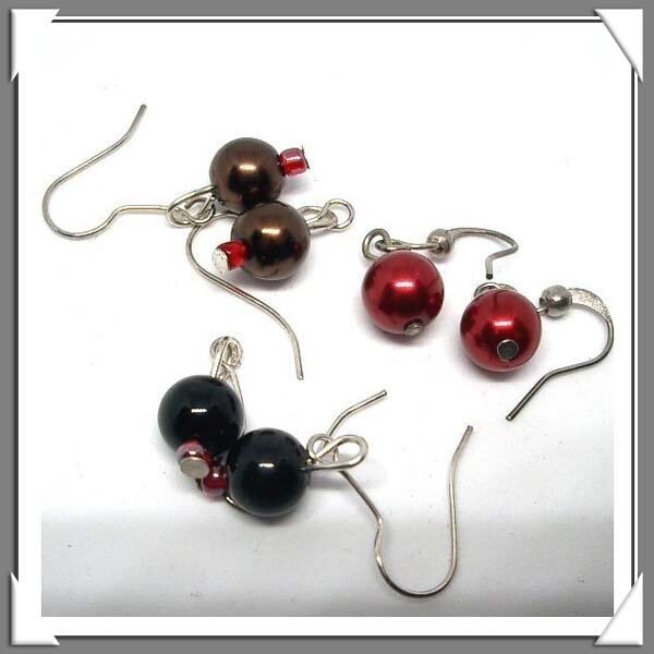 3 Paar kleine Ohrringe in rot, braun und schwarz.