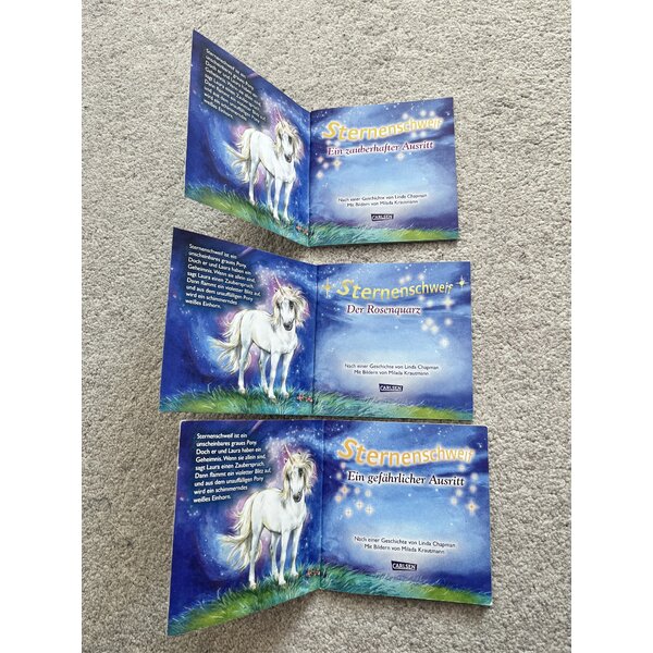 Ecken und Kanten angestoßen, bei "ein gefährlicher Ausritt" Knick im Cover und am hinteren Umschlag, bei "ein zauberhafter Ausritt" Knick im hinteren Umschlag (siehe Fotos)