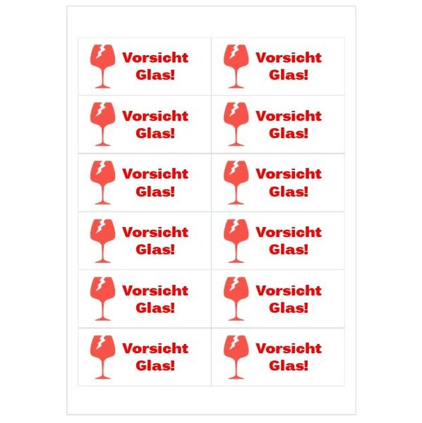 3 x 12 Etiketten "Vorsicht Glas!" selbstklebend (3 Bogen DIN A4)