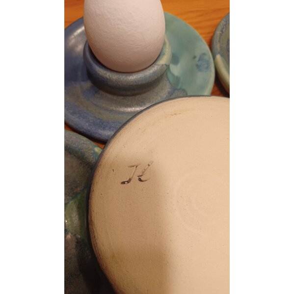 4 handgetöpferte Eierbecher.