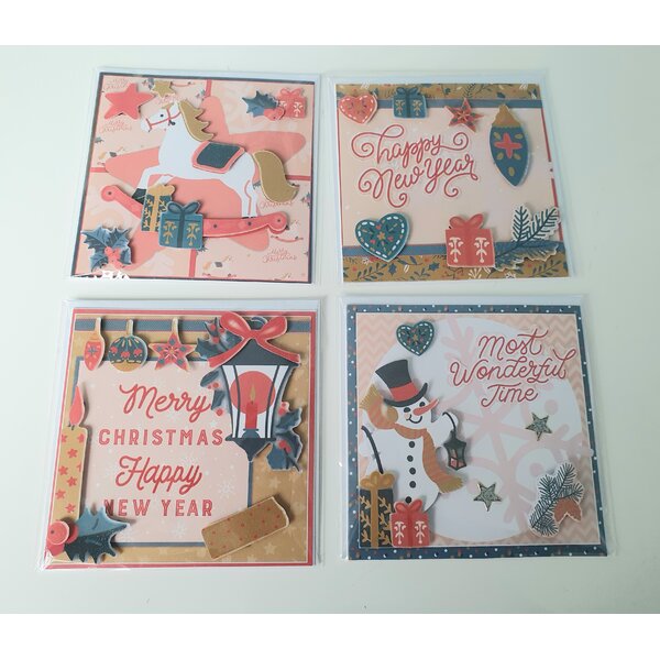 4 Grußkarten mit weihnachtlichem Motiv. Dazu gibt es passende Kuverts. Jede Karte ist in einem Folienbeutel verpackt.